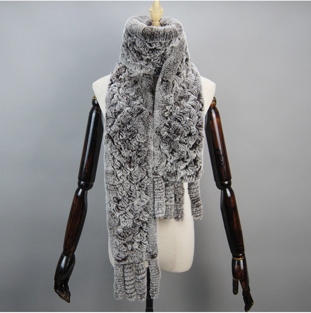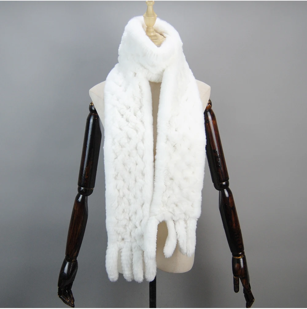 Écharpe en Fourrure group pour Hommes et Femmes, Écharpes en Fourrure de Lapin Naturelle, Longue Écharpe Chaude, 176cm